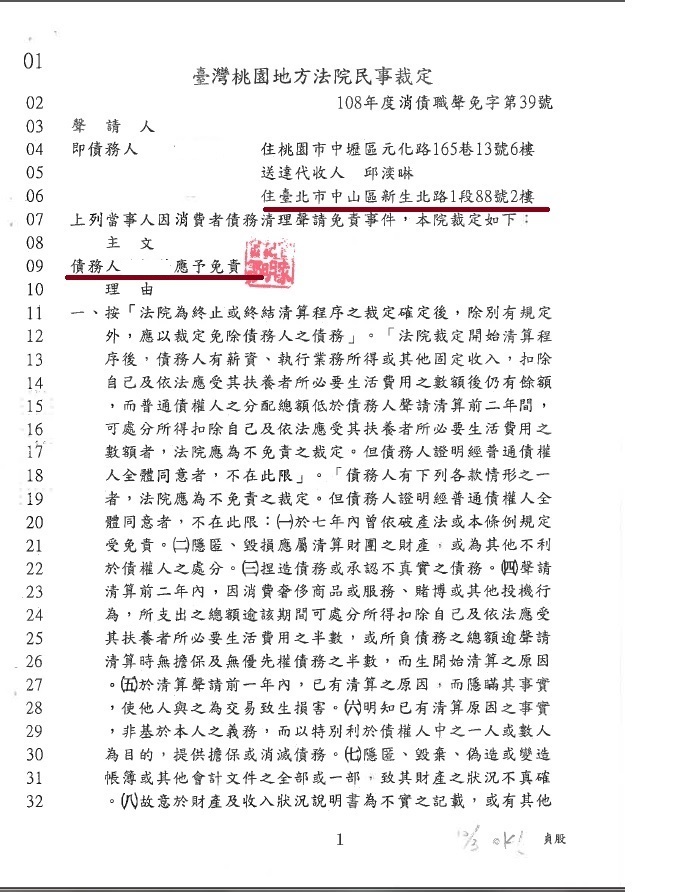 最終本司建議 清算程序處置 將其名下拍賣不足款,卡債,賣斷債權全數納入。